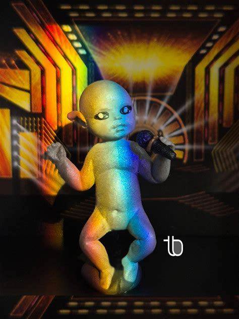 Gray Alien Fetus Miniature Polymer Clay Hand-Sculpted 1:12 Scale Realistic Gray Alien Baby Figurine